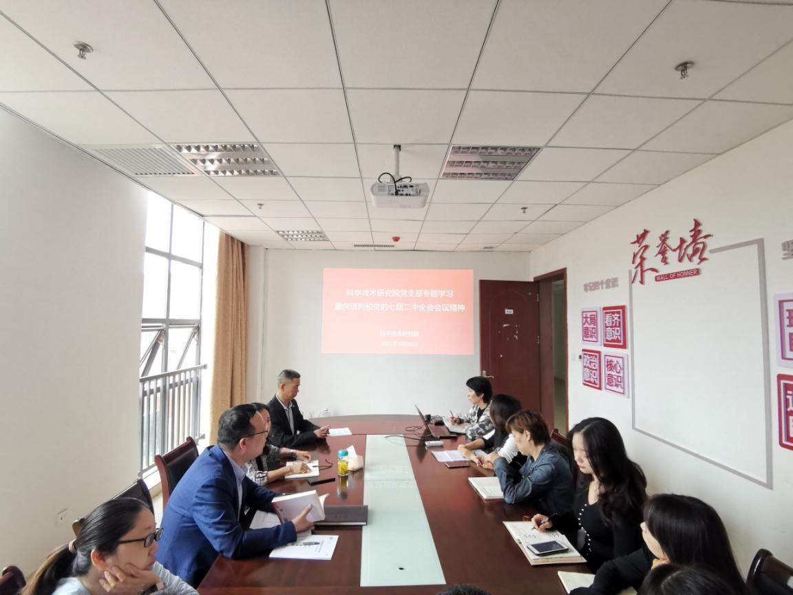 2021年3月26日上午九点,科学技术研究院党支部组织全体党员在贤正楼522会议室专题研讨了重庆谈判和党的七届二中全会会议精神。